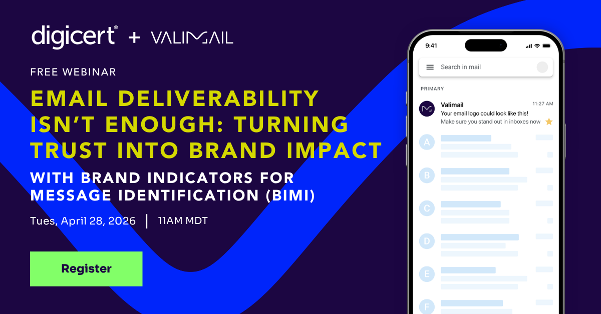 Getting to the inbox is no longer the finish line—the real challenge is earning recipient trust. In our upcoming webinar, Valimail’s Al Iverson and Mica Taboada join DigiCert’s Dean Coclin to explore how email authentication is evolving into a visible signal of brand trust.